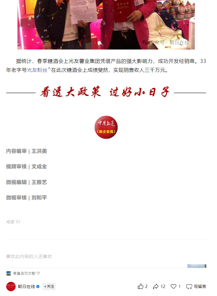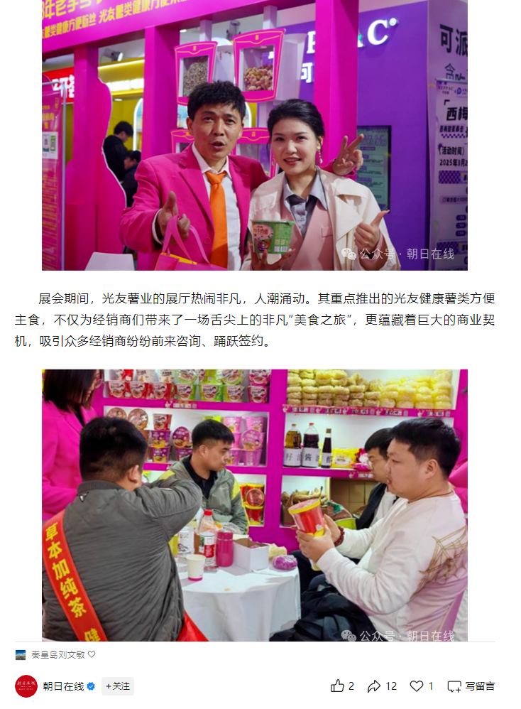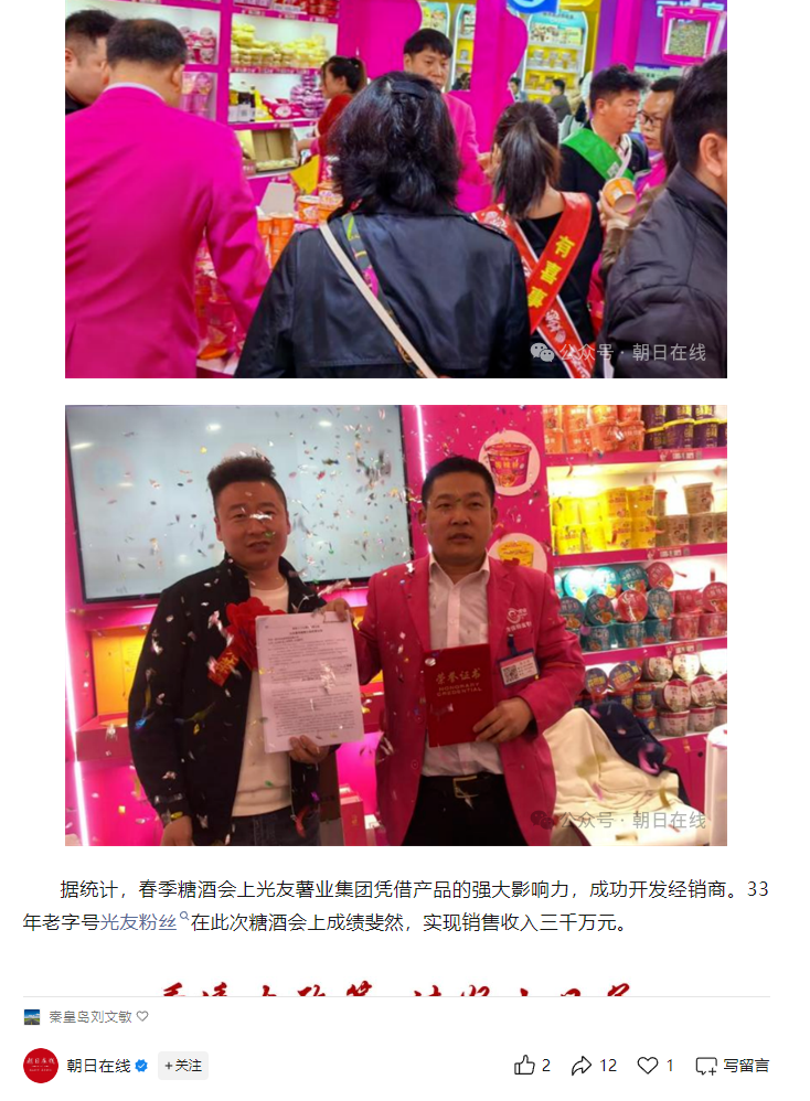 轉(zhuǎn)載朝日在線——光友粉絲香萬里 糖酒會上創(chuàng)佳績
